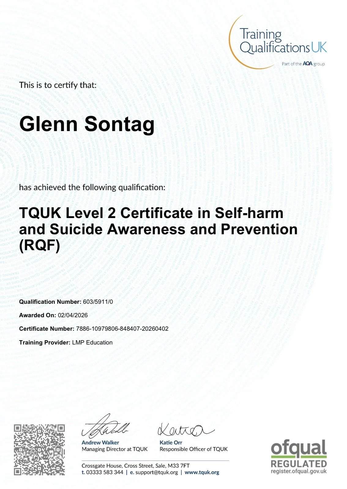 Emergency First Aid at work certificate